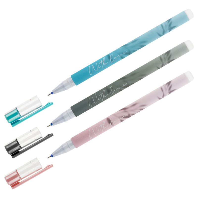 Внутри ручки в белом пластиковом корпусе – гелевые чернила, которые ярко пишут на бумаге